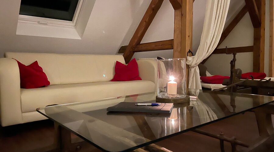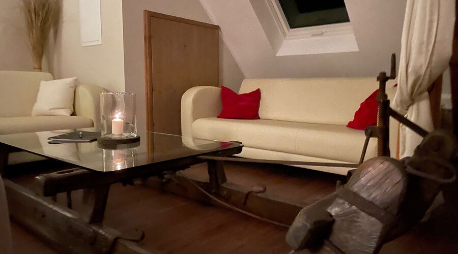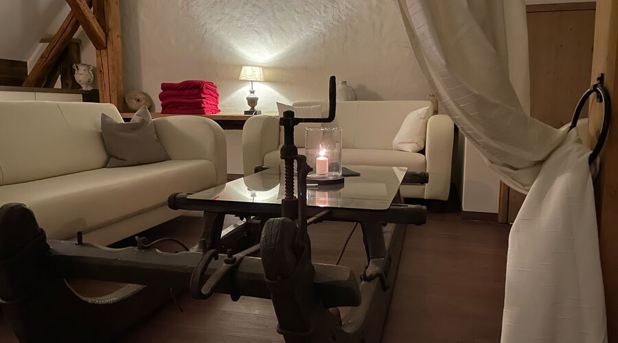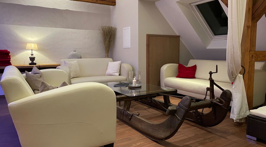 Entspannen Sie nach einem erlebnisreichen Tag in der Zur Bergwiese "Wellnessscheune" und genießen Sie den herrlichen Blick auf die Heide in wohliger Wärme.